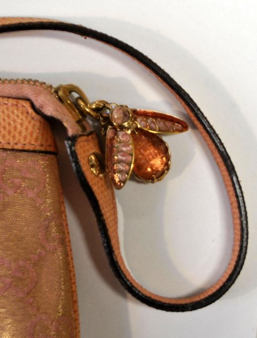 Original Gucci humlebi pochette håndtaske, 20.. årh. Italien. Med rem. Låg i form af humlebi. L.: 22 cm. H.: 13 cm.